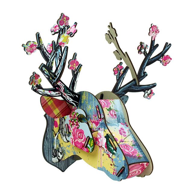 MDF板を組み立ててつくる鹿の壁掛けオブジェです。本格派のMサイズ♪ネジやフックで壁に掛けるのはもちろん、置物として飾ることも可能です。