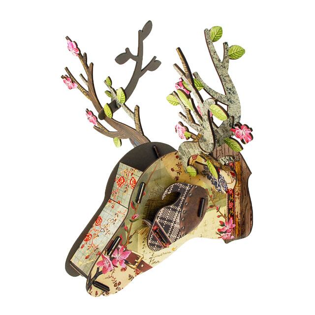 MDF板を組み立ててつくる鹿の壁掛けオブジェです。本格派のMサイズ♪ネジやフックで壁に掛けるのはもちろん、置物として飾ることも可能です。