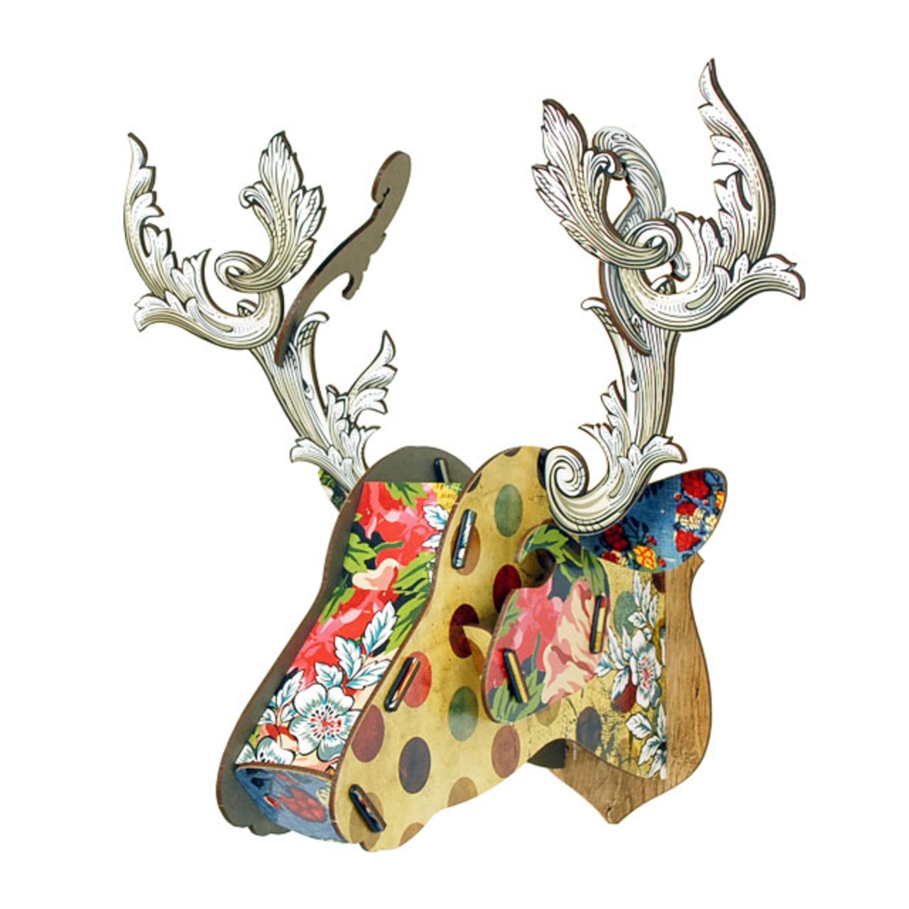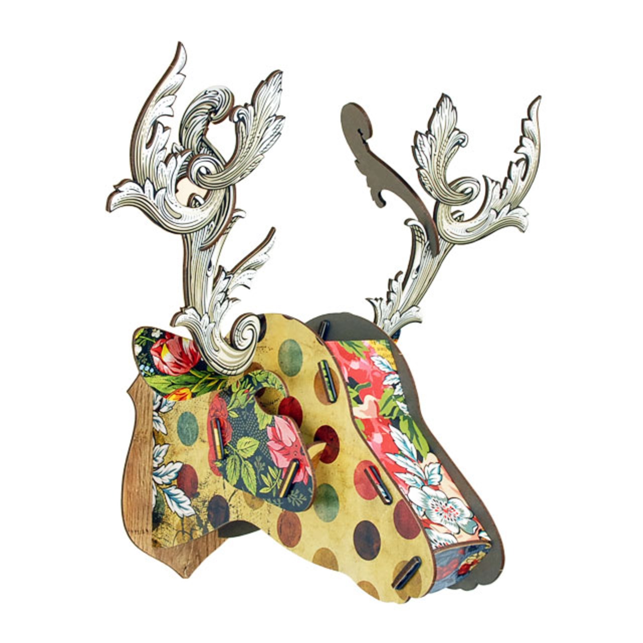 MDF板を組み立ててつくる鹿の壁掛けオブジェです。本格派のMサイズ♪ネジやフックで壁に掛けるのはもちろん、置物として飾ることも可能です。