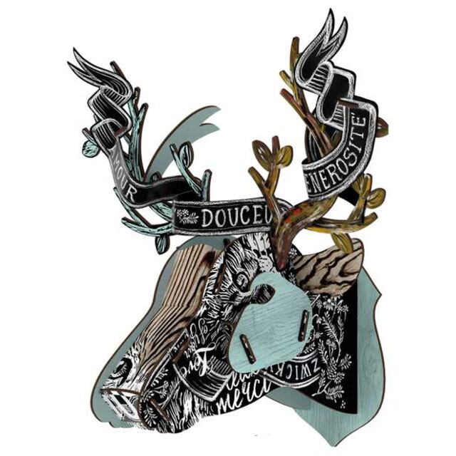 MDF板を組み立ててつくる鹿の壁掛けオブジェです。お店のデコレーションにもオススメのビッグなLサイズ!ネジやフックで壁に掛けるのはもちろん、置物として飾ることも可能です。