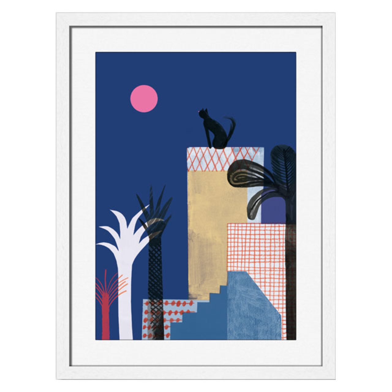 背面に壁掛け用のフック付き。プリントとアクリル板はフレームの奥側に設置されています。木製のフレームは塗装されていますが、木目やまれに節目がみられる場合があります。シュリンク包装。
