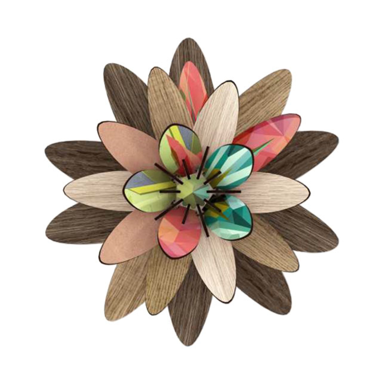 MDF板を組み立ててつくる花の壁掛けオブジェです。カラフルでポップながらも、ナチュラルさを残した素敵なデザインになっています。