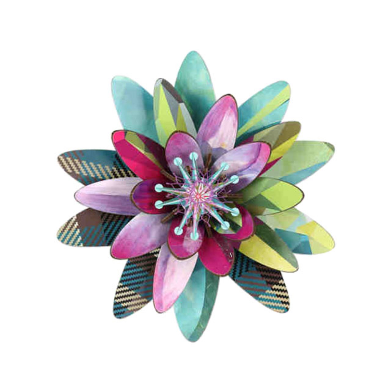 MDF板を組み立ててつくる花の壁掛けオブジェです。カラフルでポップながらも、ナチュラルさを残した素敵なデザインになっています。こちらの商品には、中心部分に取り付けるポリエチレン製のネットがアクセントとして付属されています。