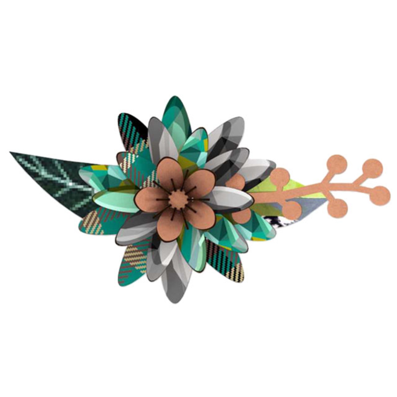 MDF板を組み立ててつくる花の壁掛けオブジェです。カラフルでポップながらも、ナチュラルさを残した素敵なデザインになっています。