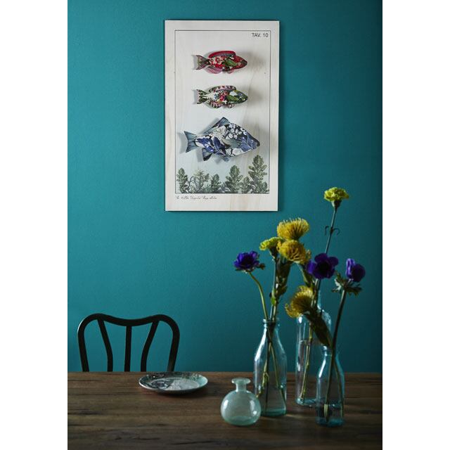 MDF板を組み立ててつくる魚のオブジェです。壁掛け用のパーツも付いており、ウォールデコとして飾ることもできます。