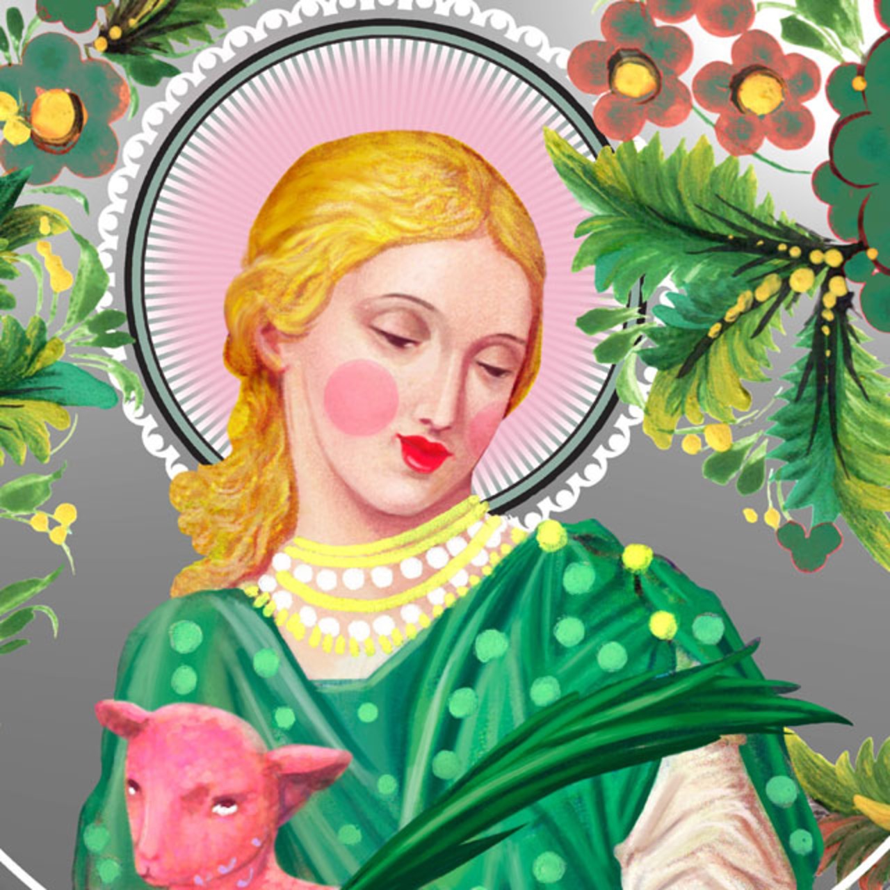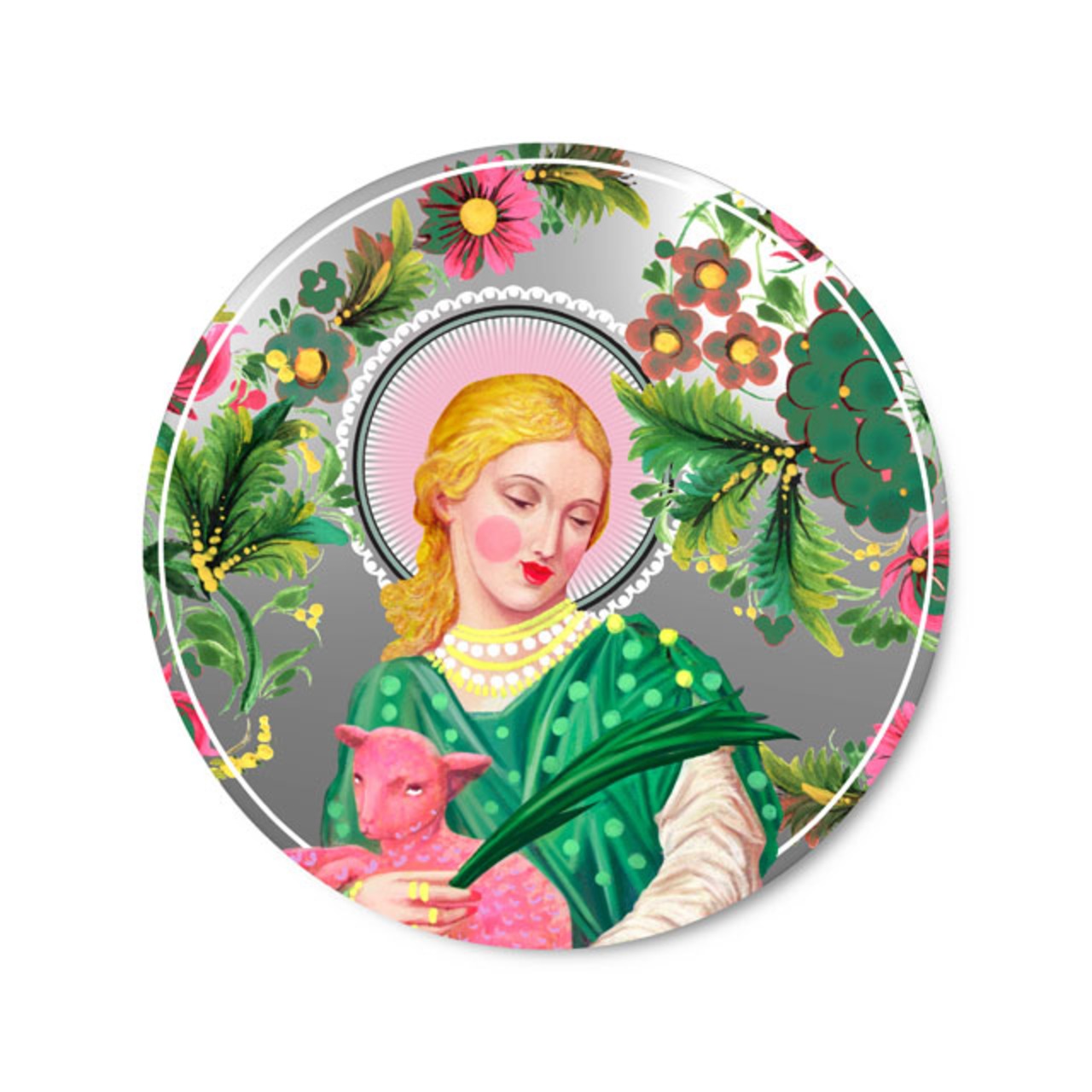 キリスト教の聖人という伝統的なモチーフながら、ポップなデザインで親しみやすく、プレゼントやお守りとしてはもちろん、インテリアの彩りとしてもおすすめです。