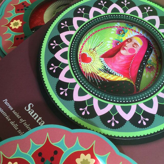 守護聖人をテーマにしたミニチュアサイズのイコン風オブジェです。キリスト教の聖人という伝統的なモチーフながら、ポップなデザインで親しみやすく、プレゼントやお守りとしてはもちろん、インテリアの彩りとしてもおすすめです。