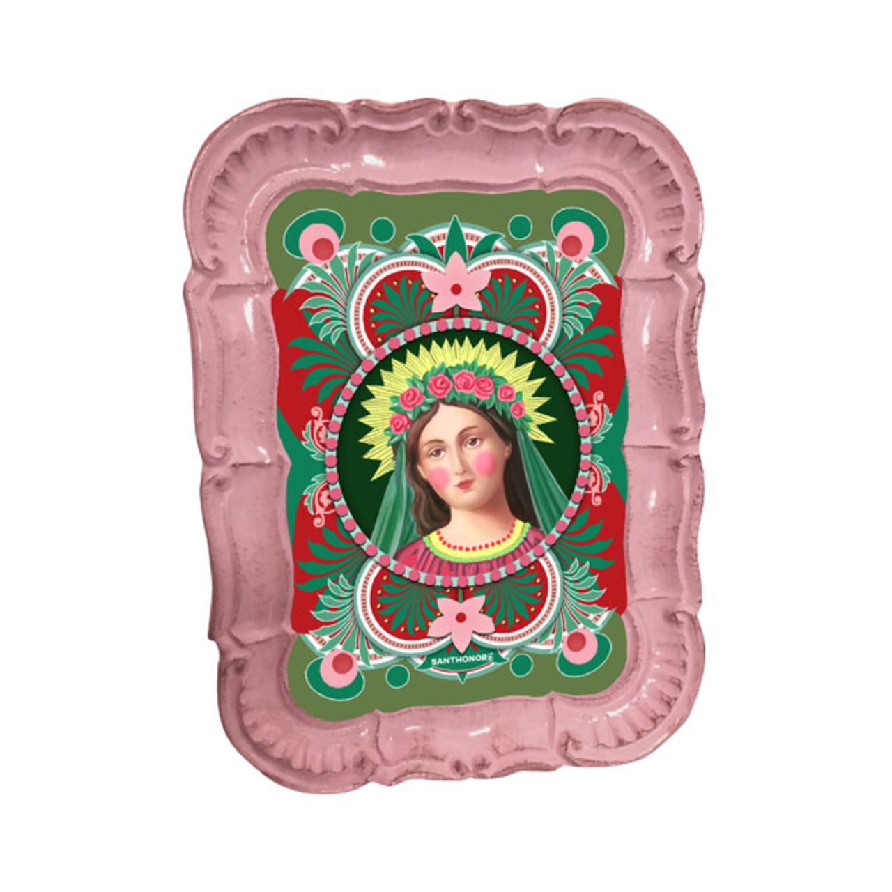 守護聖人をテーマにしたアンティーク調の木製トレイです。トレイとしてだけでなく、オブジェとして飾っても◎