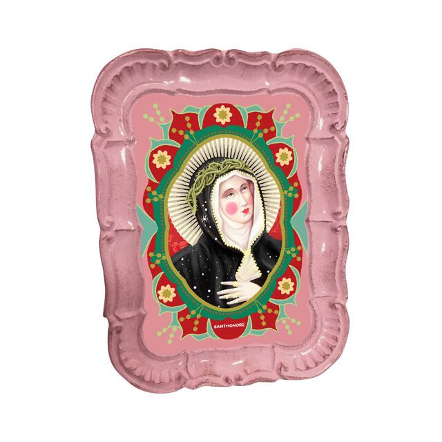 守護聖人をテーマにしたアンティーク調の木製トレイです。トレイとしてだけでなく、オブジェとして飾っても◎