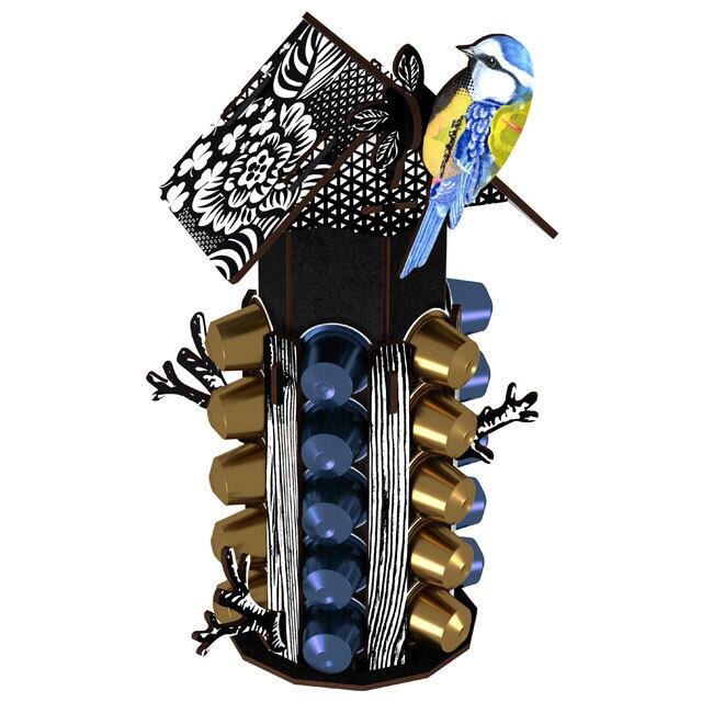 ネスプレッソのコーヒーカプセルをおしゃれに収納できるディスペンサーです。置き型、壁掛け、どちらでも使用可能です。外側のパーツはリバーシブルになっており、好みやインテリアに合わせてデザインを変えることができます。最大30カプセル収納可能。
